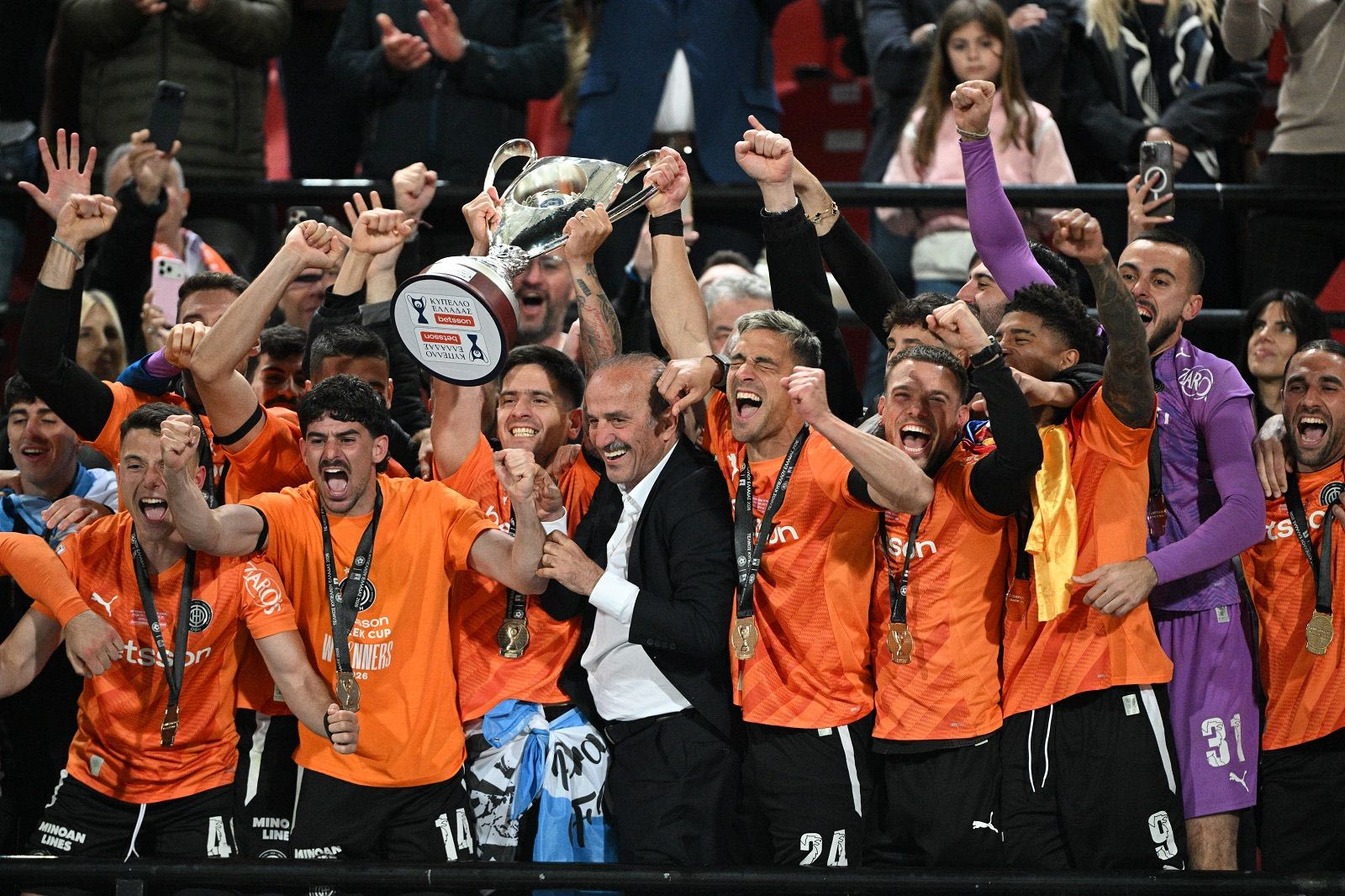 Μία στιγμή που περίμεναν 39 χρόνια στον ΟΦΗ έφτασε, καθώς οι παίκτες των Κρητικών σήκωσαν στον ουρανό του Πανθεσσαλικού το τρόπαιο του Κυπέλλου Ελλάδας Betsson.
