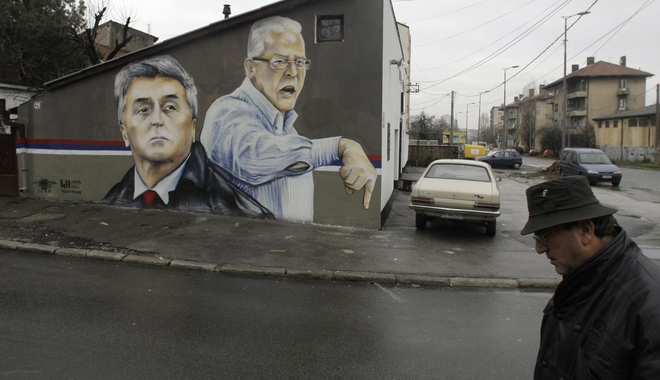 Ντούσαν Ίβκοβιτς και Ράντομιρ Άντιτς σε τοίχο στο Βελιγράδι DARKO VOJINOVIC/AP