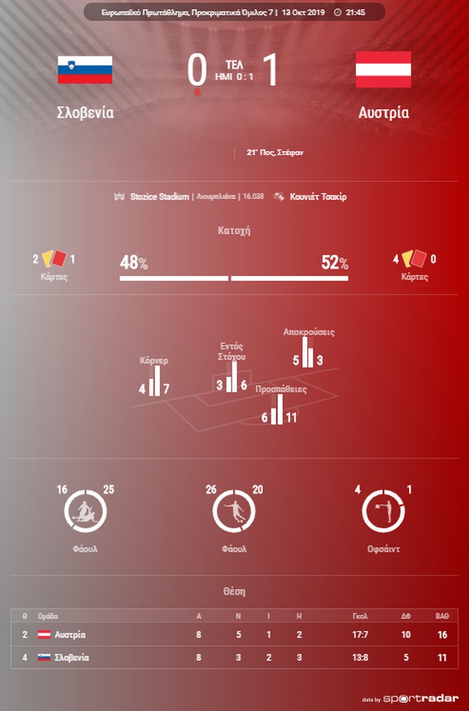 Σλοβενία – Αυστρία 0-1 (21′ Πος)