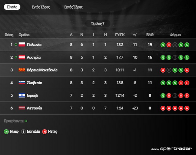 Στο έτερο ματς του 7ου ομίλου, η Αυστρία πήρε τεράστια εκτός έδρας νίκη επικρατώντας 1-0 της Σλοβενίας και βρίσκεται πλέον αγκαλιά με τη 2η θέση που δίνει το εισιτήριο για τα τελικά, έχοντας πλέον απόσταση πέντε πόντων από Βόρεια Μακεδονία και Σλοβενία δύο αγωνιστικές πριν το φινάλε.