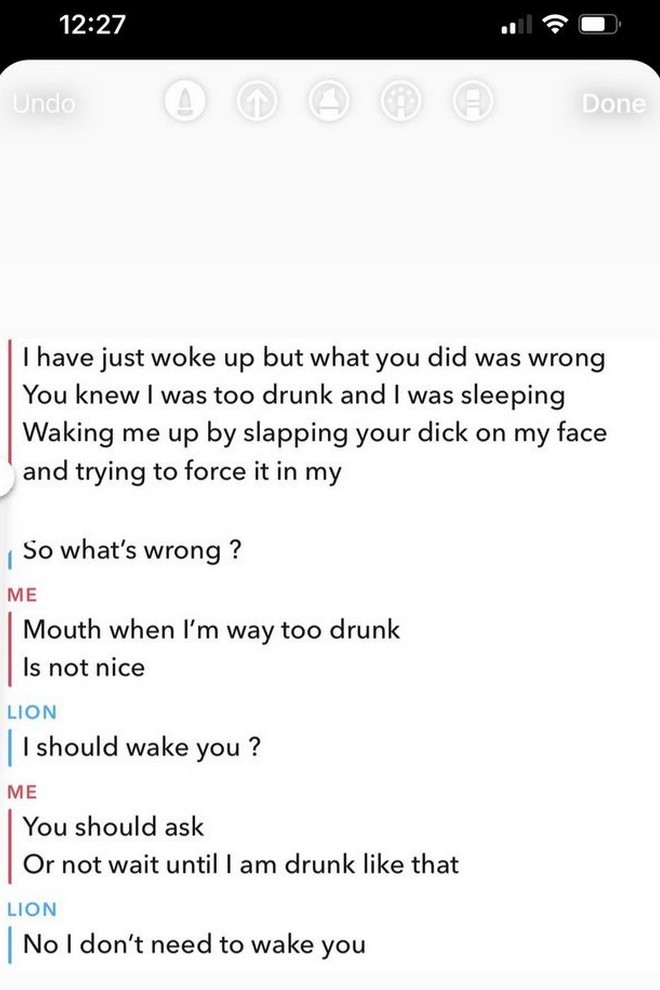 Είναι κατά συρροή βιαστής. Μπορώ να ποστάρω screenshots για μέρες. Προσπάθησα να το λύσω όταν βγαίναμε ραντεβού, ήθελα να πιστέψω ότι δεν με βίασε και ότι έγινε κάποιο λάθος. Αυτός όμως παραδέχθηκε ότι είναι βιαστής.