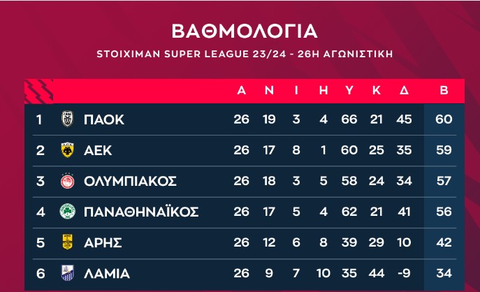 Stoiximan Super League: Η βαθμολογία της κανονικής διάρκειας, έτσι πάνε οι ομάδες στα playoffs
