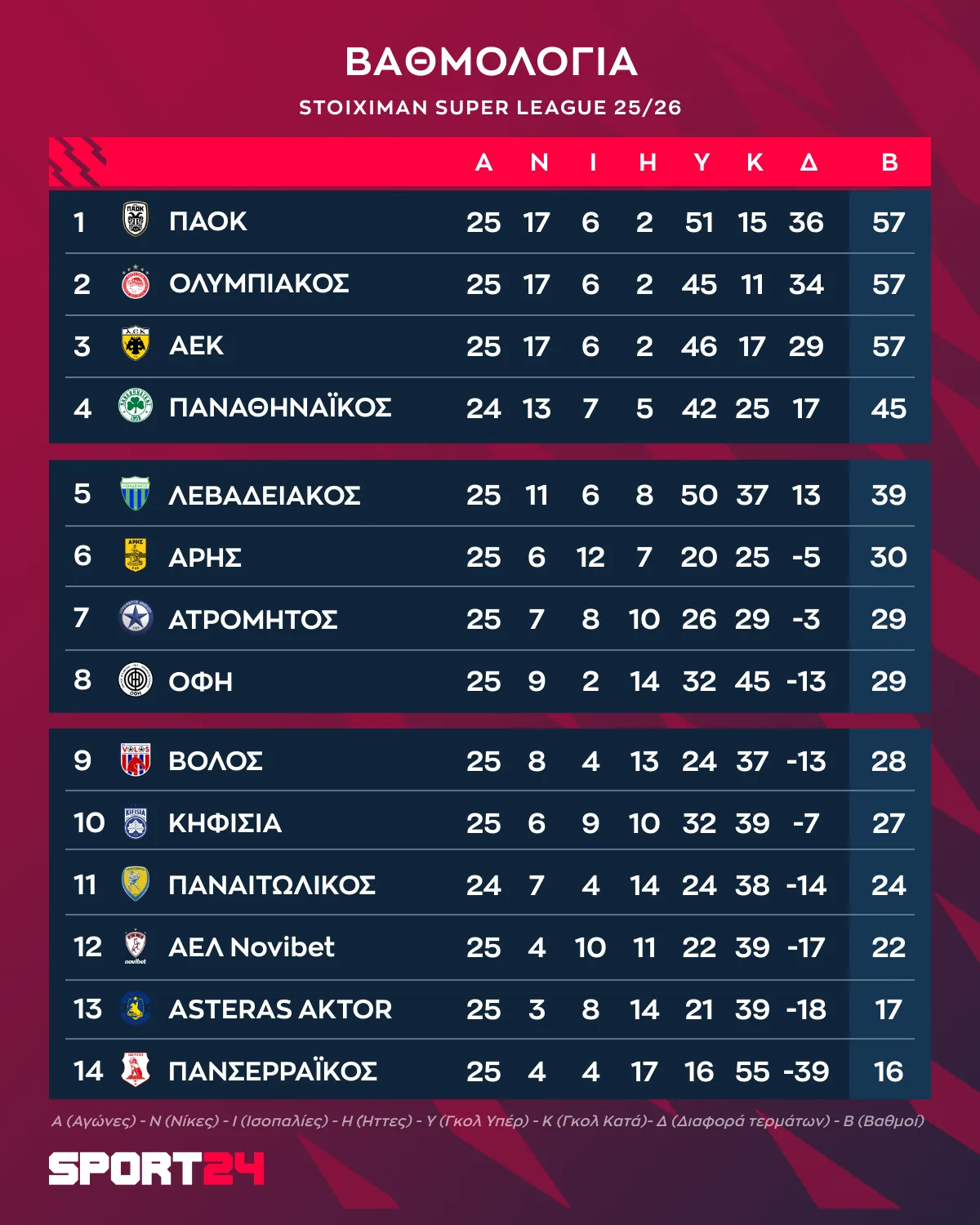 Το πρόγραμμα και τα αποτελέσματα της 25ης αγωνιστικής