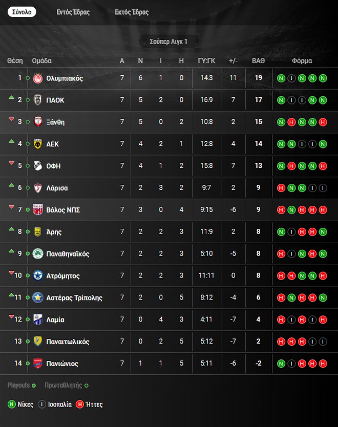 Super League: Η βαθμολογία μετά από την 7η αγωνιστική