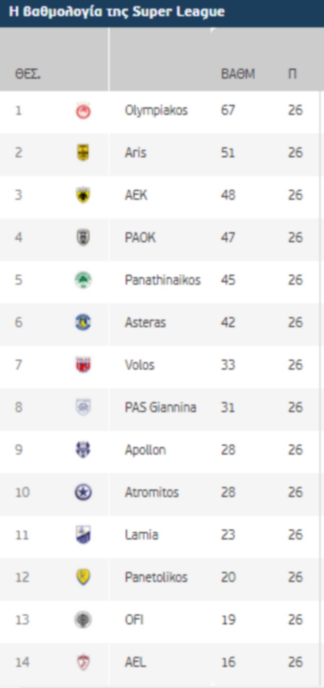 Δείτε εδώ αναλυτικά την βαθμολογία της Super League Interwetten