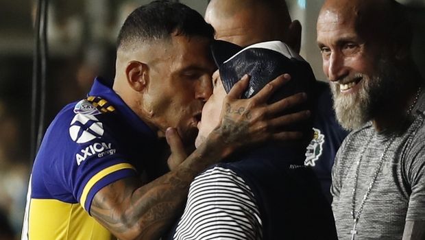 Ο Κάρλος Τέβες πέτυχε το γκολ τίτλου για τη Μπόκα απέναντι στη Χιμνάσια Λα Πλάτα και στους πανηγυρισμούς έχασε τα μυαλά του, φιλώντας στο στόμα τον Ντιέγκο Αρμάντο Μαραντόνα.