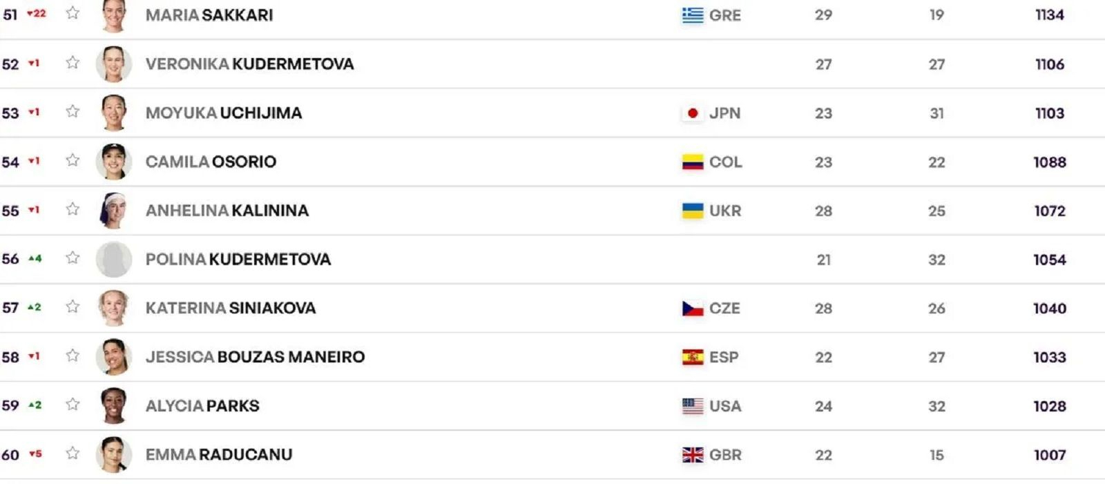Συγκεκριμένα, η κορυφαία Ελληνίδα τενίστρια βρίσκεται στο Νο51 της WTA Rankings, σημειώνοντας πτώση 22 θέσεων, ενώ αξίζει να σημειωθεί ότι τελευταία φορά είχε βρεθεί εκτός Τοπ 50 ήταν τον Απρίλιο του 2019.