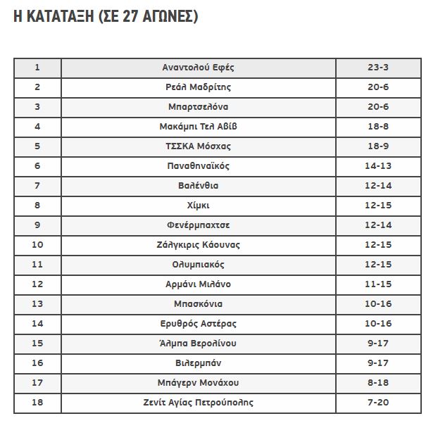 Βαθμολογία EuroLeague: Ονειρεύεται ο Ολυμπιακός, πιέζεται ο Παναθηναϊκός