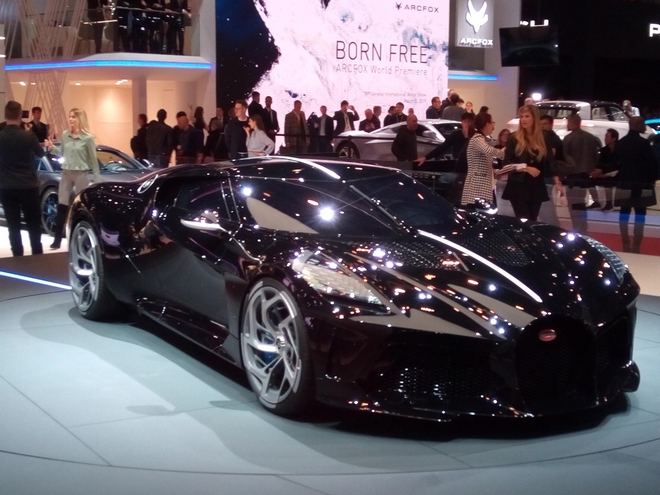 Το πιο ακριβό αυτοκίνητο της έκθεση με τιμή προ φόρων 11 εκατ. ευρώ. Βάλτε τη φορολογία κάθε χώρας και θα φθάσετε τιμές από 14 έως και 17 εκατ. Τσάμπα πράμα, δηλαδή. Χτισμένο πάνω στο σύστημα κίνησης Chiron και κατασκευασμένο από ανθρακονήματα, σχεδιασμένο από τον Jean Bugatti, τον μεγαλύτερο γιο του ιδρυτή Ettore, εφοδιάζεται με 16κύλινδρο κινητήρα – τον μοναδικό στον κόσμο της αυτοκινητοβιομηχανίας, ένα έργο τέχνης 8.0 lt με 1.500 ίππους ισχύ και 1.600 Nm ροπής.