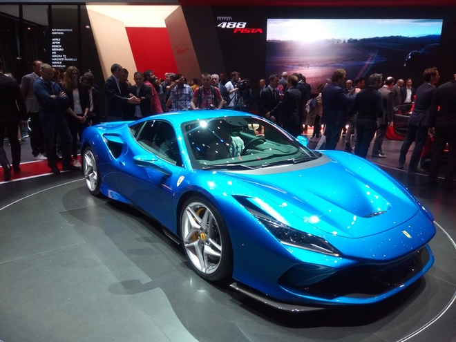 Το 2015, στο ίδιο Σαλόνι Αυτοκινήτου, η Ferrari εισήγαγε την 488 GTB, ως αντικαταστάτη για την 458 Italia. Φέτος έκανε εμφάνιση η νέα F8 Tributo, που συσκευάζει τον πιο ισχυρό κινητήρα V8 που δημιούργησε ποτέ η Ferrari. Με 720 ίππους και 568 Nm της ροπής που παράγεται από τον κινητήρα 3.9 lt, επιταχύνει στα 0-100 χλμ./ώρα σε μόλις 2,9 δευτερόλεπτα και αγγίζει τα 340 χλμ./ώρα τελική ταχύτητα. Το αυτοκίνητο ζυγίζει μόλις 1.330 κιλά και έχει βελτιωμένη αεροδυναμική απόδοση κατά 10% σε σύγκριση με την 488 GTB. Με την κυκλοφορία της F8 Tributo, η Ferrari ανανεώνει και την καμπίνα εισάγοντας και νέο τιμόνι, με καινούργια χειριστήρια.