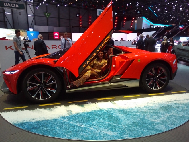 Το… καγκουρό, είναι προς το παρόν το πρωτότυπο αυτοκίνητο, ενός διθέσιου, ηλεκτρικού υπερ-αυτοκινήτου με σύστημα τετρακίνησης. Τοποθετείται σε ζάντες 22 ιντσών, έχει κρυστάλλινα LED φώτα και συνδυάζει την ιδέα της πόρτας gullwing με ένα σύστημα σχήματος ψαλιδιού. Το Kangaroo χρησιμοποιεί δύο ηλεκτρικούς κινητήρες 180 kW (συνολικά 360 kW) που είναι κρυμμένοι κάτω από το σώμα από ανθρακονήματα. Η ανάρτηση του αυτοκινήτου μπορεί να τροποποιηθεί χρησιμοποιώντας τρεις ρυθμίσεις – Racing, Road και Off-Road – ενώ η ροπή στρέφεται στα 680 Nm. Μια μπαταρία 90-kWh εξασφαλίζει μέγιστη απόσταση μεγαλύτερη από 450 χλμ. Επιταχύνει σε 3,8 δευτερόλεπτα και μπορεί να φτάσει σε μέγιστη ταχύτητα 250 χλμ./ώρα.