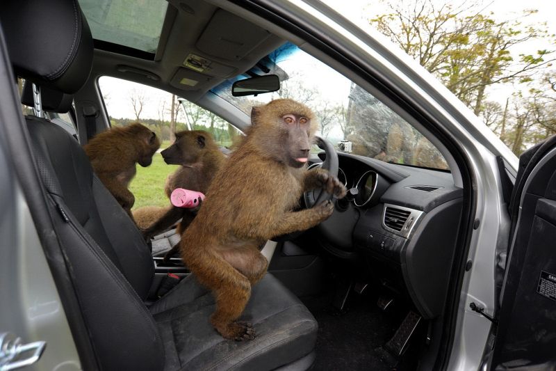 Μαζί με τους υπαλλήλους του πάρκου, οι άνθρωποι της Hyundai καθόταν και παρακολουθούσε περισσότερους από 40 μπαμπουίνους να μπαινοβγαίνουν στο i30 που είχε ανοικτές όλες τις πόρτες.