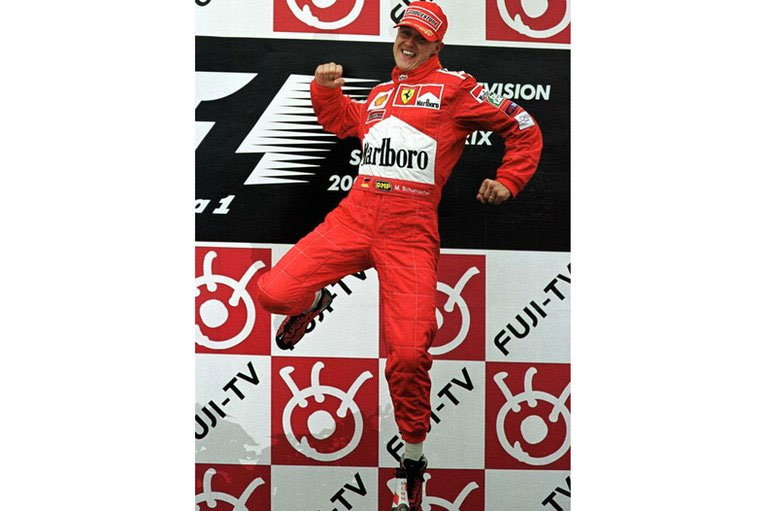 2000 GP Ιαπωνίας : Ο Σούμι πανηγυρίζει στην πίστα της Σουζούκα τη νίκη που του χάρισε τον πρώτο του τίτλο με την Ferrari.