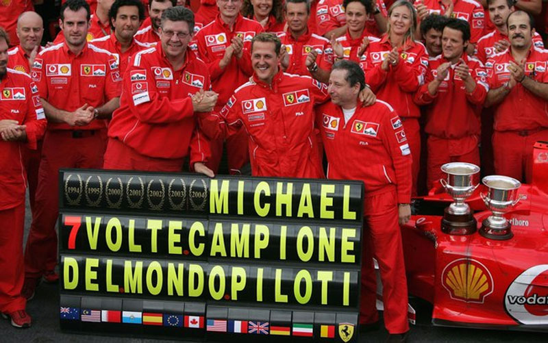 2004 Βελγικό GP : Ο Σουμάχερ κερδίζει το 7ο παγκόσμιο πρωτάθλημα οδηγών στην καριέρα του έχοντας τερματίσει στην δεύτερη θέση στο γκραν πρι του Βελγίου, πίσω από τον Κίμι Ράϊκονεν με την Mc Laren