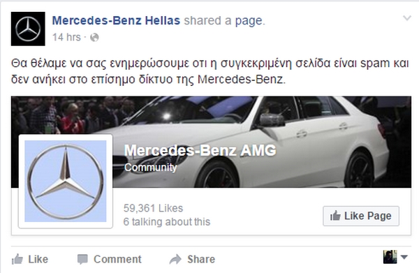 Ο δήθεν διαγωνισμός στήθηκε από τους υπεύθυνους της σελίδας Mercedes-Benz AMG. Η επίσημη σελίδα όμως της Mercedes-Benz Hellas διευκρινίζει: “Θα θέλαμε να σας ενημερώσουμε οτι η συγκεκριμένη σελίδα είναι spam και δεν ανήκει στο επίσημο δίκτυο της Mercedes-Benz”.