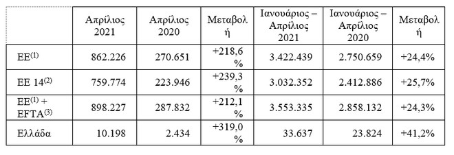 Σε επίπεδο ΕΕ, με βάση τα στοιχεία του Ευρωπαϊκού Συνδέσμου Κατασκευαστών Αυτοκινήτων (www.acea.be), η αγορά των επιβατικών κινήθηκε ως και τον Απρίλιο ως εξής:
