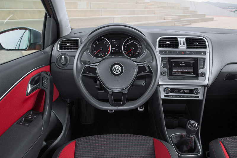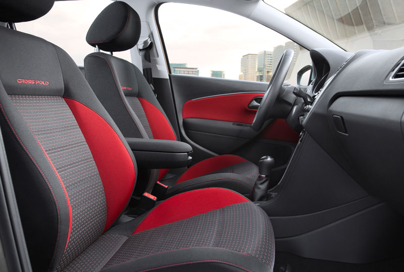 Η εσωτερική σχεδίαση του νέου CrossPolo συνάδει με την εξωτερική εμφάνιση. Η δίχρωμη επένδυση των καθισμάτων και των θυρών δημιουργούν ένα ευχάριστο εσωτερικό. Η απτή ποιότητα κατασκευής είναι εμφανής και σε αυτή την έκδοση, ενώ την εικόνα συμπληρώνουν τα σπορ καθίσματα με λογότυπο “CROSSPOLO”, το σπορ τιμόνι με διάτρητο δέρμα και η επένδυση αλουμινίου στα πεντάλ και την κεντρική κονσόλα. Υπάρχουν αρκετοί αποθηκευτικοί χώροι, όπως στο κεντρικό υποβραχιόνιο εμπρός, στα συρτάρια κάτω από τα εμπρός καθίσματα και στην κεντρική κονσόλα.