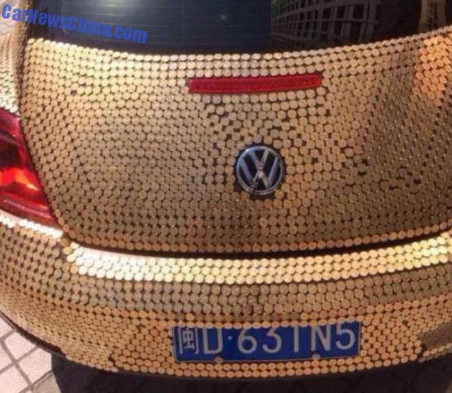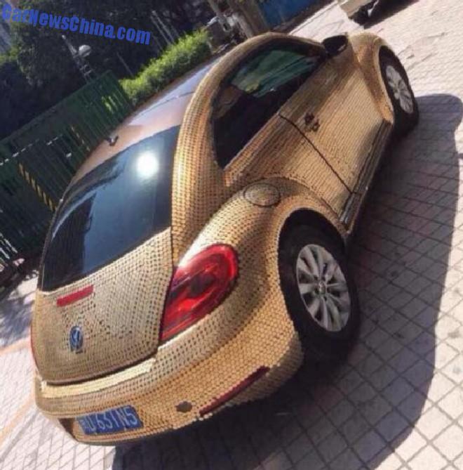 Δύο ανθρώπους προσέλαβε μια μια γυναίκα από την Κίνα, στην οποία ανήκει το VW Beetle, για να το καλύψουν με περισσότερα από 10.000 νομίσματα.