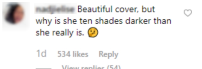 Το μεγαλύτερο μέρος της κριτικής απευθυνόταν στο εν λόγω περιοδικό που εφάρμοσε την επεξεργασία στη φωτογραφία. “Συγχαρητήρια που την κάνατε να μην έχει καμία σχέση με την “πραγματική της εμφάνιση”, αναφέρει ένας χρήστης του Instagram. “Εν έτει 2019 εάν θέλεις μία σκουρόχρωμη γυναίκα στο εξώφυλλό σου, τότε επίλεξε μία σκουρόχρωμη γυναίκα”, γράφει ένας άλλος.