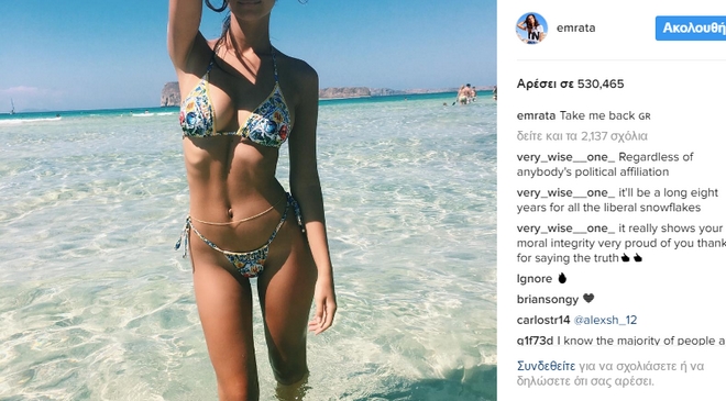 “Take me back”, έγραψε χαρακτηριστικά στην πρώτη, αναπολώντας το καλοκαίρι της χώρας μας. Φυσικά, όπως ήταν αναμενόμενο δηλαδή, προκάλεσε καταιγισμό σχολίων από τους θαυμαστές της.