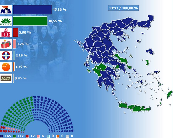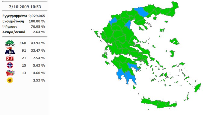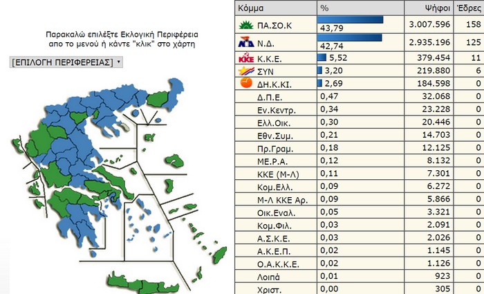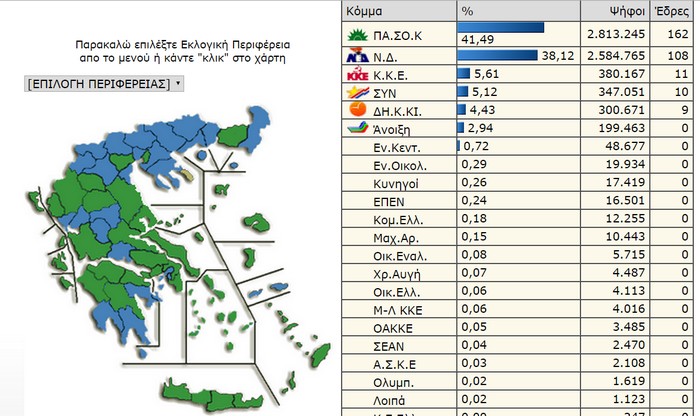 Από την παντοδυναμία του ΠΑΣΟΚ, στην επταετία Καραμανλή, την καταβαράθρωση του δικομματισμού και την ραγδαία άνοδο των ποσοστών του ΣΥΡΙΖΑ, οι χάρτες των με τα αποτελέσματα των εκλογών από το 1996 μέχρι και σήμερα