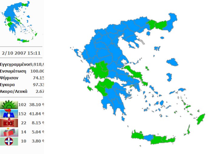 Από την πράσινη Ελλάδα του ΠΑΣΟΚ, στην γαλάζια περίοδο Καραμανλή και στη ροζ αποτύπωση της νίκης ΣΥΡΙΖΑ το 2015, αυτοί είναι οι πολιτικοί χάρτες της χώρας μετά από κάθε εκλογική αναμέτρηση: