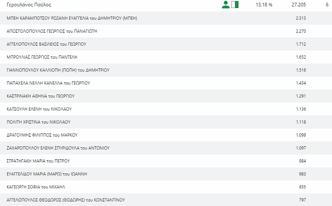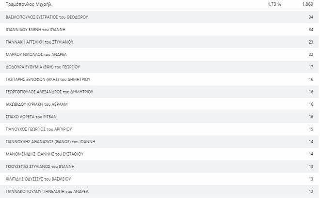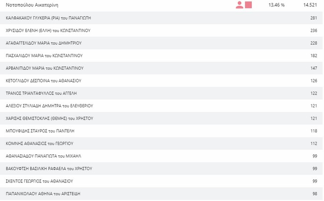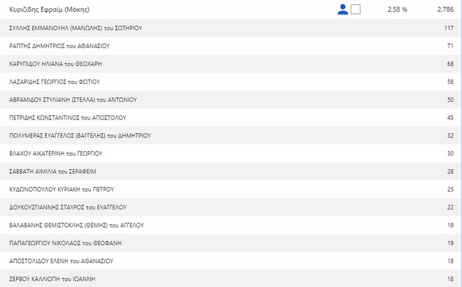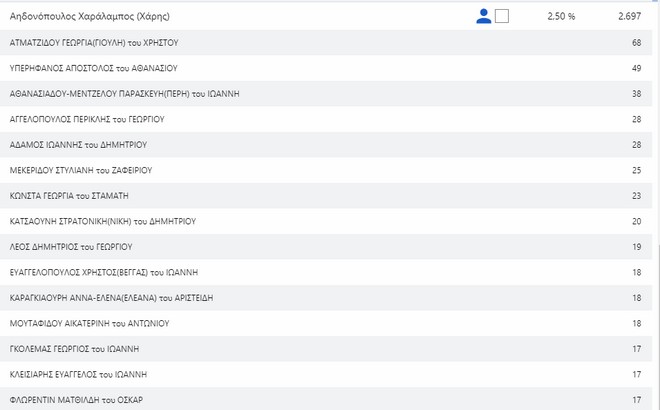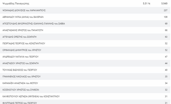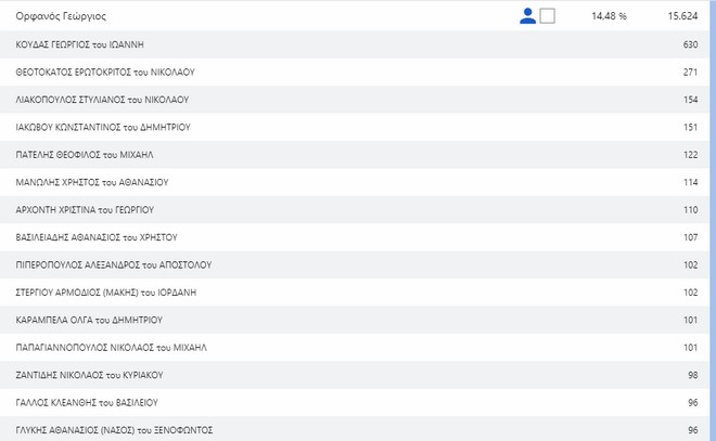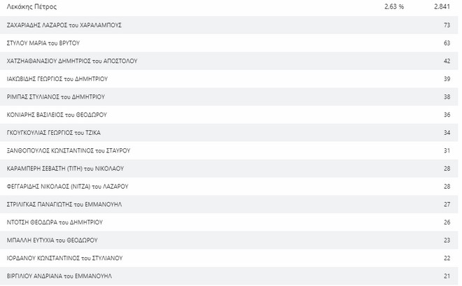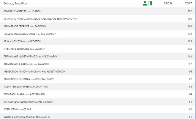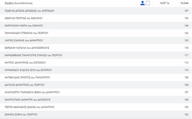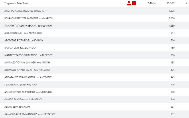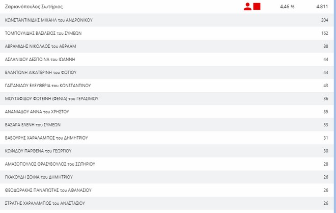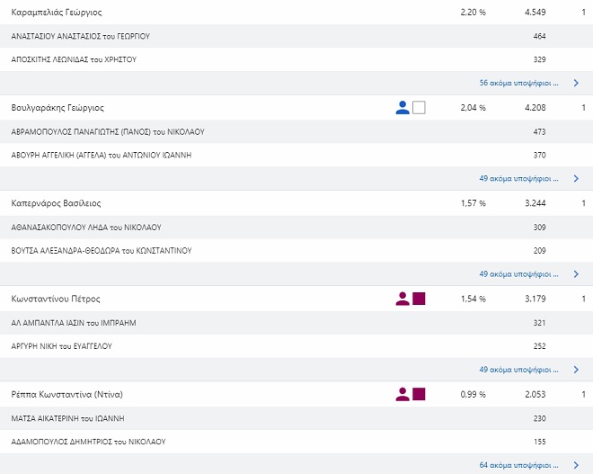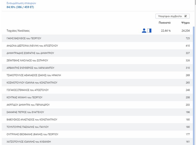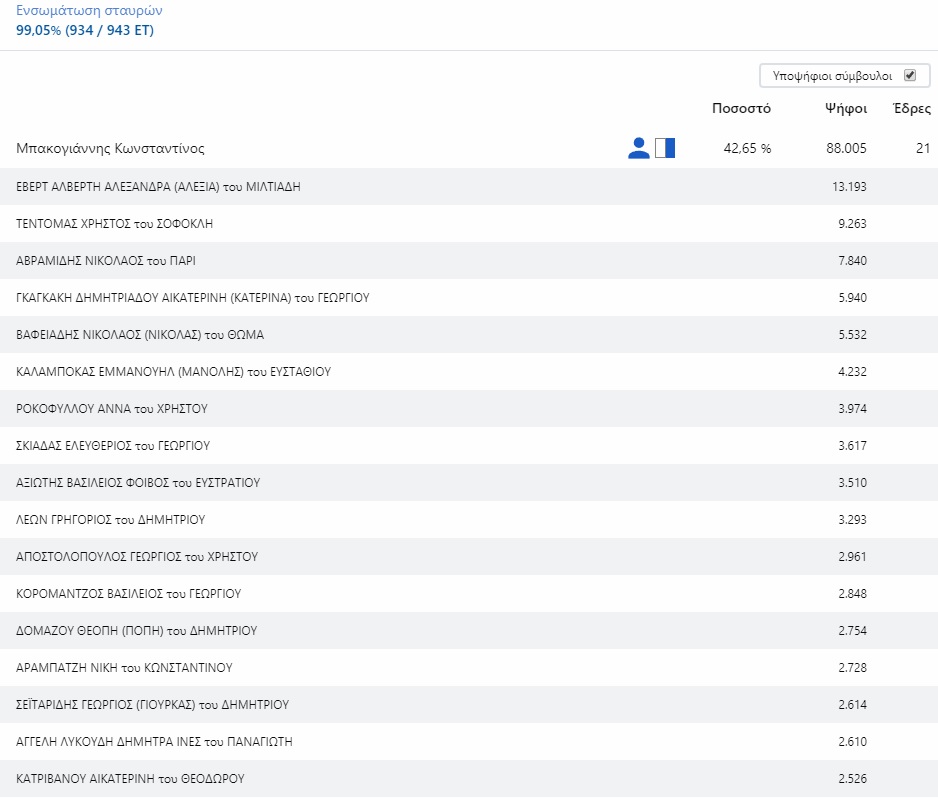 Με την ενσωμάτωση στο 99,5% (935 τμήματα από 943) Αλεξία Εβερτ, Χρήστος Τεντόμας και Ρήγας Αξελός, Δέσποινα Αλεβυζάκη συμπληρώνουν την λίστα των  πρώτων υποψηφίων για τους συνδυασμούς του Κώστα Μπακογιάννη και του Νάσου Ηλιόπουλου.