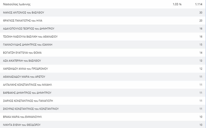Αναλυτικά η λίστα για το δήμο της Αθήνας: