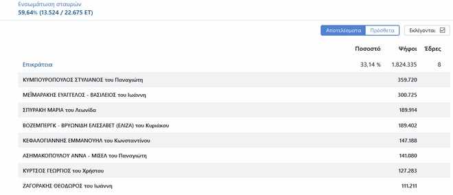 Σε ενσωμάτωση 59,64% των σταυρών (13.524 / 22.675 ΕΤ) ο Θοδωρής Ζαγοράκης προηγείται του Γιώργου Αμυρά και σύμφωνα με τα μέχρι στιγμής αποτελέσματα εκλέγεται ευρωβουλευτής.