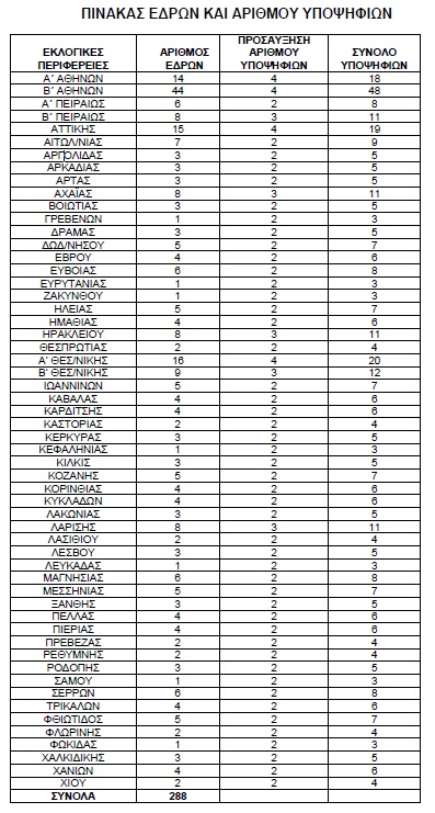 Πόσοι θα είναι οι σταυροί προτίμησης που θα συμπληρώνουν στα ψηφοδέλτια οι ψηφοφόροι ανά νομό της χώρας αλλά και οι έδρες που κατανέμονται στις εκλογικές Περιφέρειες