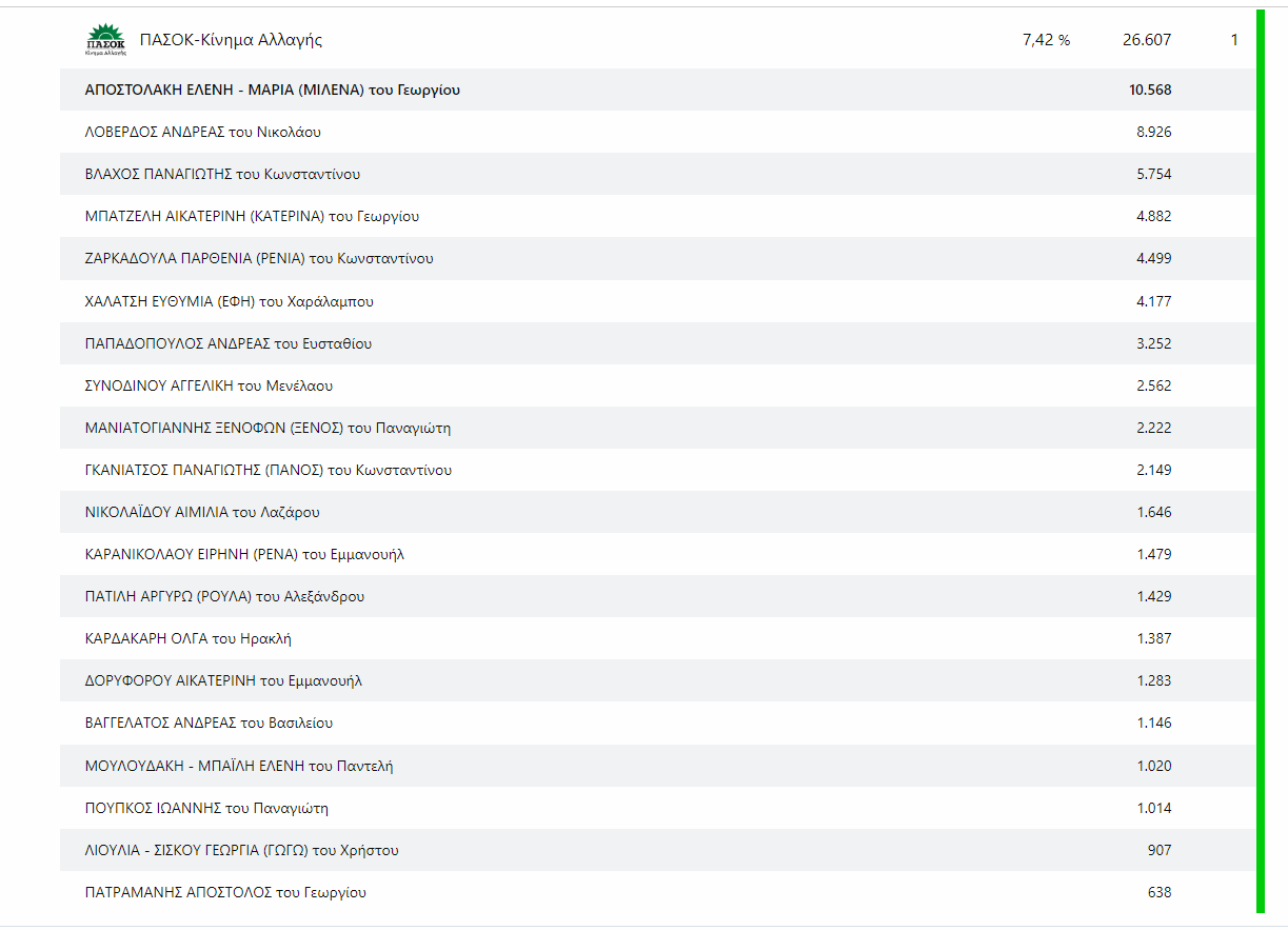 Αναλυτικά οι σταυροί του ΠΑΣΟΚ στην Α’ Αθηνών: