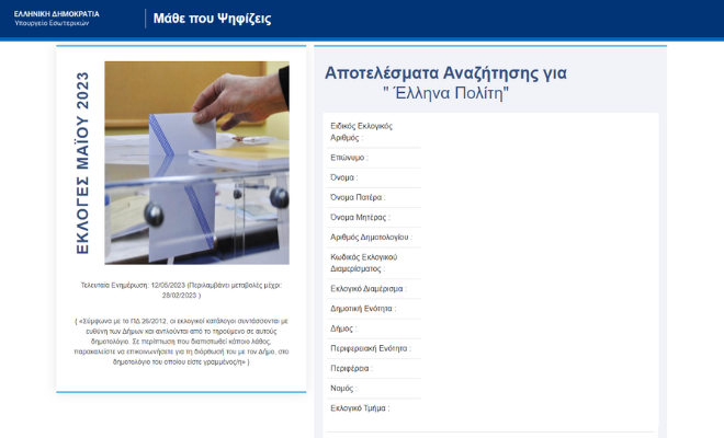 Εθνικές Βουλευτικές Εκλογές 2023: Μάθε πού ψηφίζεις – Βρες το εκλογικό σου διαμέρισμα