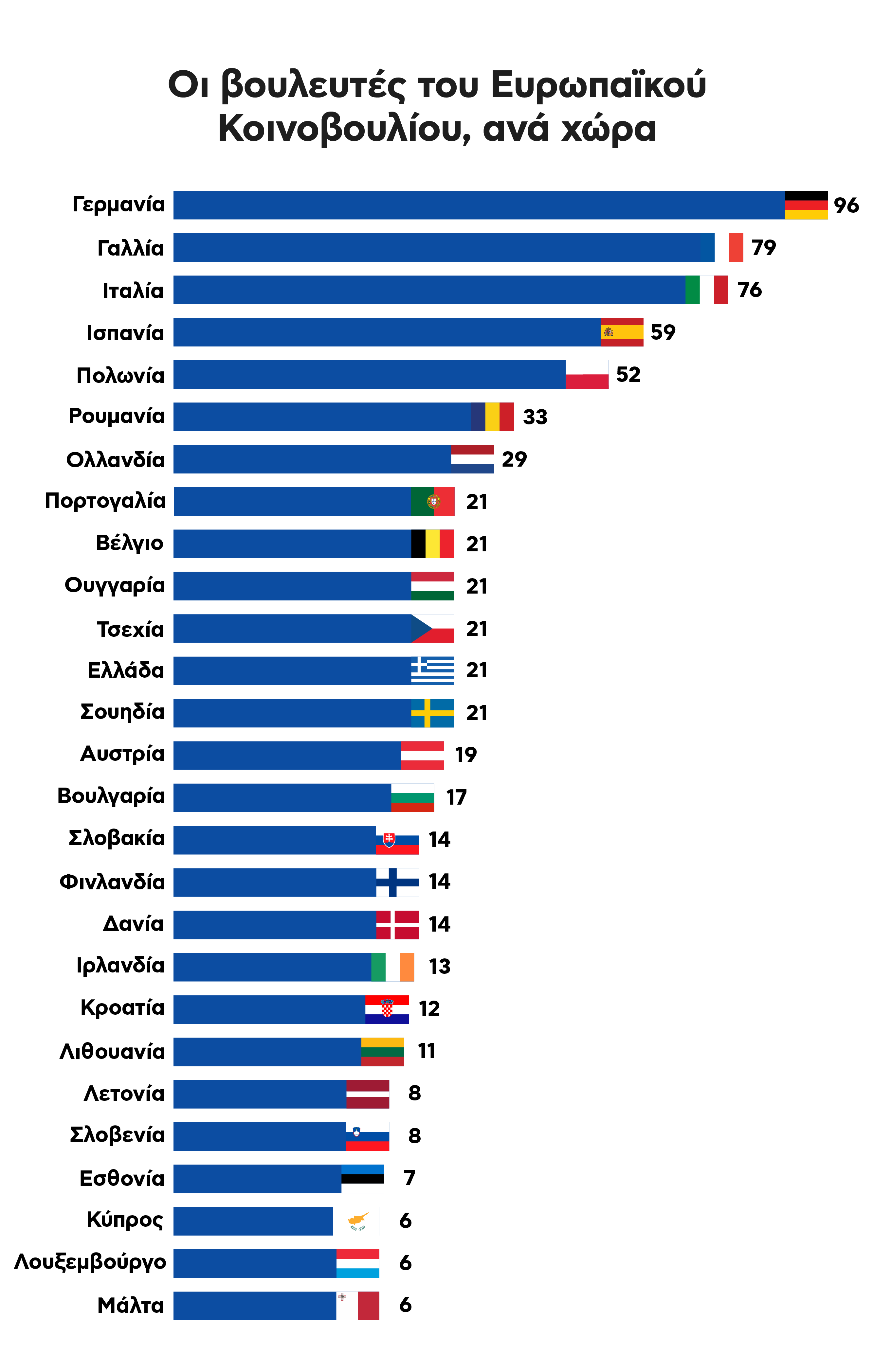 Η Ελλάδα θα εκπροσωπηθεί στο Ευρωπαϊκό Κοινοβούλιο από 21 βουλευτές. Ο αριθμός των θέσεων στην Ευρωβουλή εξαρτάται από τον πληθυσμό κάθε χώρας.