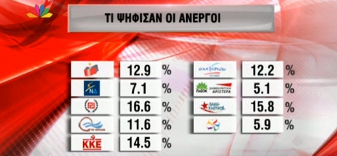 Στην κάρτα που ακολουθεί φαίνεται ο τρόπος που επέλεξαν οι άνεργοι το κόμμα της προτίμησής τους: