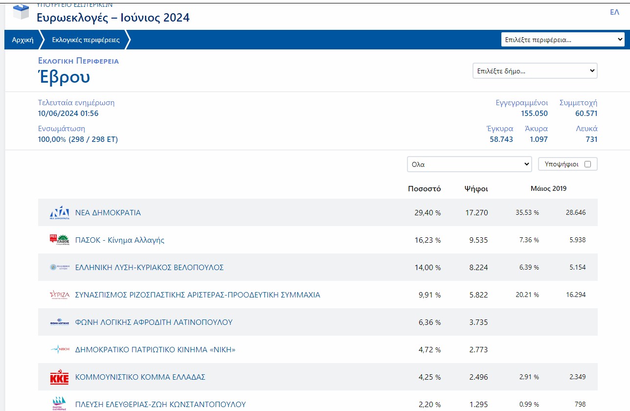 Η άγνωστη κ. Αλεξανδράκη συγκέντρωσε 51.237 ψήφους, ενώ το κόμμα του Βελόπουλου διπλασίασε τα ποσοστά του στον Έβρο. Ο τραγέλαφος με τον “λάθος” Φραγκούλη.