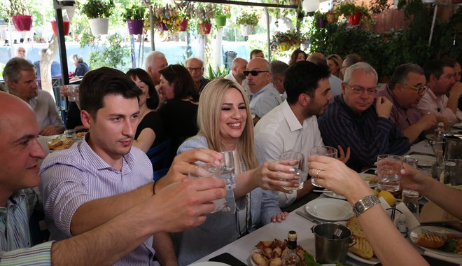 Μετά από μια εντατική προεκλογική εκστρατεία που κορυφώθηκε το βράδυ της Παρασκευής στη Θεσσαλονίκη, η πρόεδρος του Κινήματος Αλλαγής, Φώφη Γεννηματά, πέρασε το μεσημέρι της παραμονής των Ευρωεκλογών στη Καισαριανή μαζί με ηγετικά στελέχη του ΚΙΝΑΛ, στενούς συνεργάτες, υποψήφιους ευρωβουλευτές και δημοσιογράφους σε γνωστή ψαροταβέρνα της περιοχής.