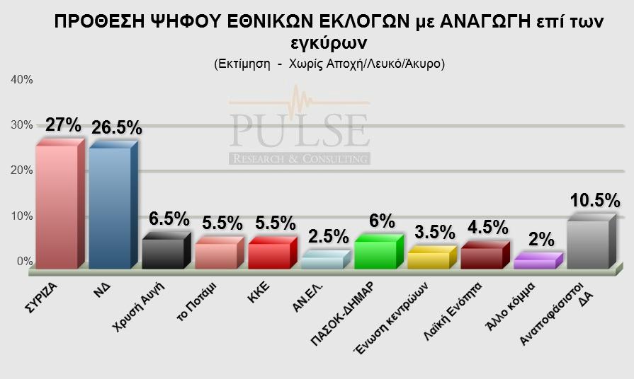 Νέα Δημοσκόπηση: Οριακά μπροστά ο ΣΥΡΙΖΑ με μισή μονάδα διαφορά από τη ΝΔ
