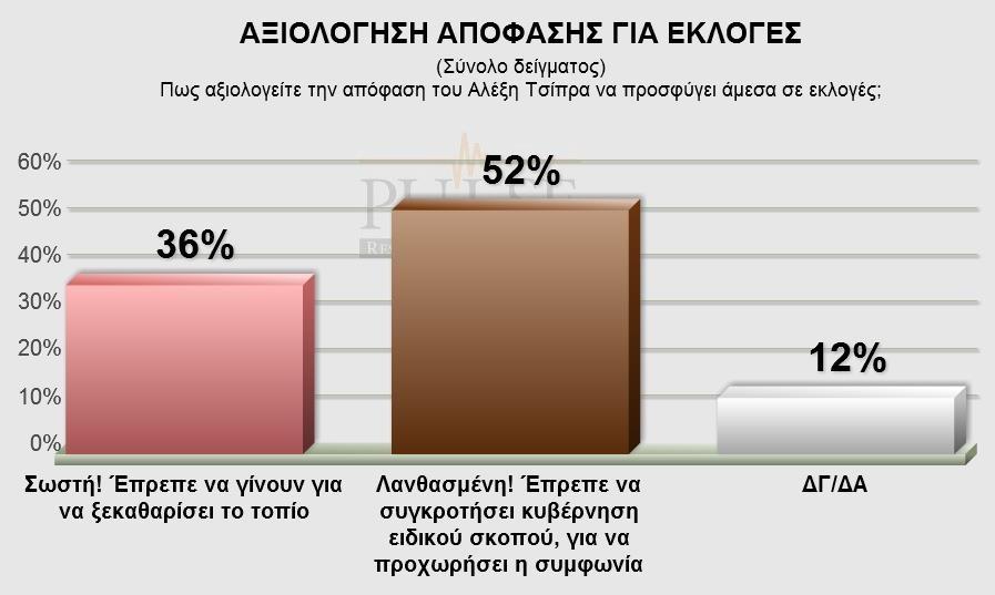Όμως, περίπου οι μισοί (52%), χαρακτηρίζουν την απόφαση για εκλογές «λανθασμένη», έναντι 36% που τη βρίσκουν σωστή.