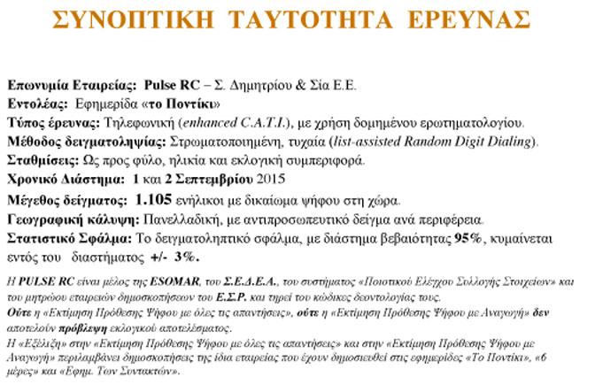 Νέα δημοσκόπηση επιβεβαιώνει την οριακή διαφορά στα δύο πρώτα κόμματα, καθώς και τη χαμηλή συσπείρωση στο ΣΥΡΙΖΑ. Τρίτη σταθερά η Χρυσή Αυγή, πεσμένο το Ποτάμι που βρίσκεται πίσω από το ΠΑΣΟΚ. Εκτός Βουλής οι ΑΝΕΛ (pics)