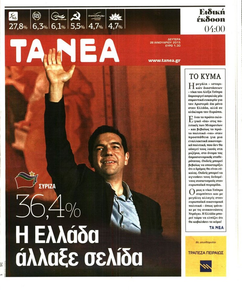 Υπάρχουν εκατοντάδες αφορμές για να χαμογελάσεις τη Δευτέρα 26 Ιανουαρίου. Δυστυχώς, υπάρχουν άλλες τόσες για να βάλεις τα κλάματα και να χτυπιέσαι στα πεζοδρόμια. Μπορείς να κρατήσεις αυτό το άρθρο για να έχεις συγκεντρωμένες τις πιο ιστορικές στιγμές της μετεκλογικής Κυριακής και να το ανοίξεις την επαύριο των επόμενων εκλογών, όποτε κι αν γίνουν αυτές.