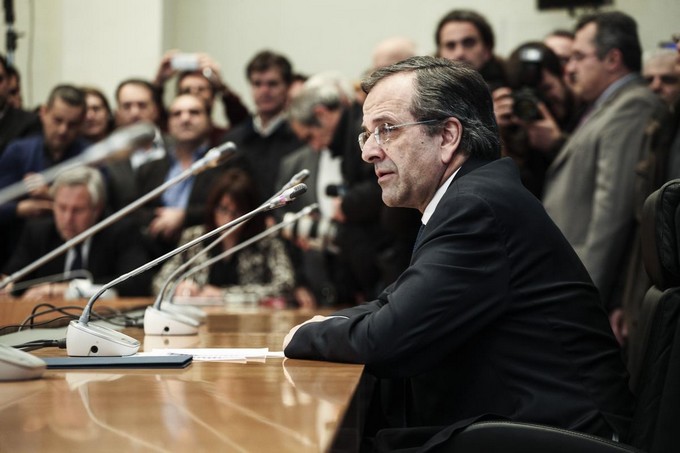 Greek prime minister Antonis Samaras made statements to the press at Zappeion hall, after the first official results that stated his New Democracy Party lost the elections, on Jan. 25, 2015 / , 25 , 2015 SOOC