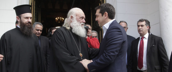 Ο πρόεδρος του ΣΥΡΙΖΑ συναντήθηκε με τον αρχιεπίσκοπο πριν μεταβεί στο Προεδρικό Μέγαρο, για τη συνάντηση με τον Πρόεδρο της Δημοκρατίας, Κάρολο Παπούλια και στη συνέχεια, την ορκωμοσία με πολιτικό όρκο. Σύμφωνα με πληροφορίες, στην ορκωμοσία δεν θα παραστεί ο κ. Ιερώνυμος.