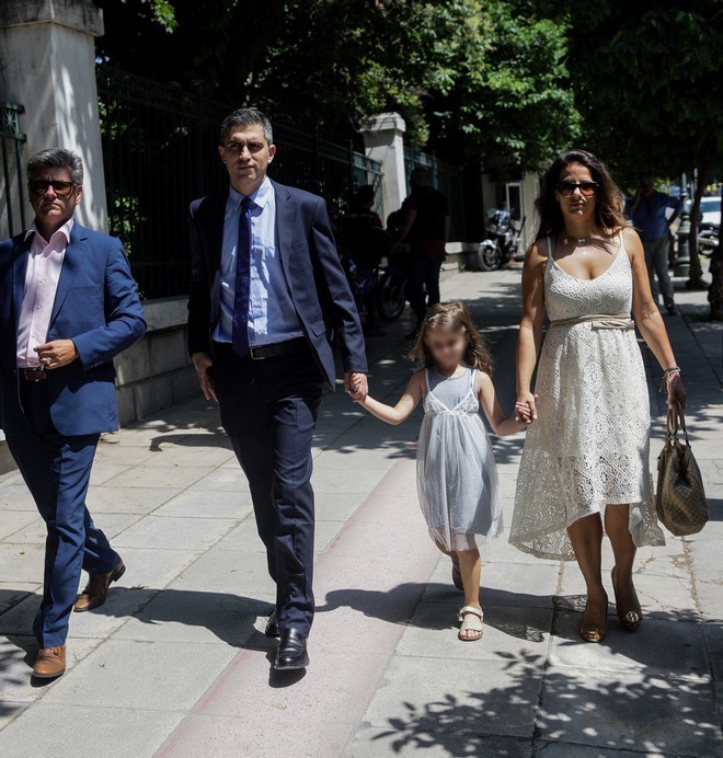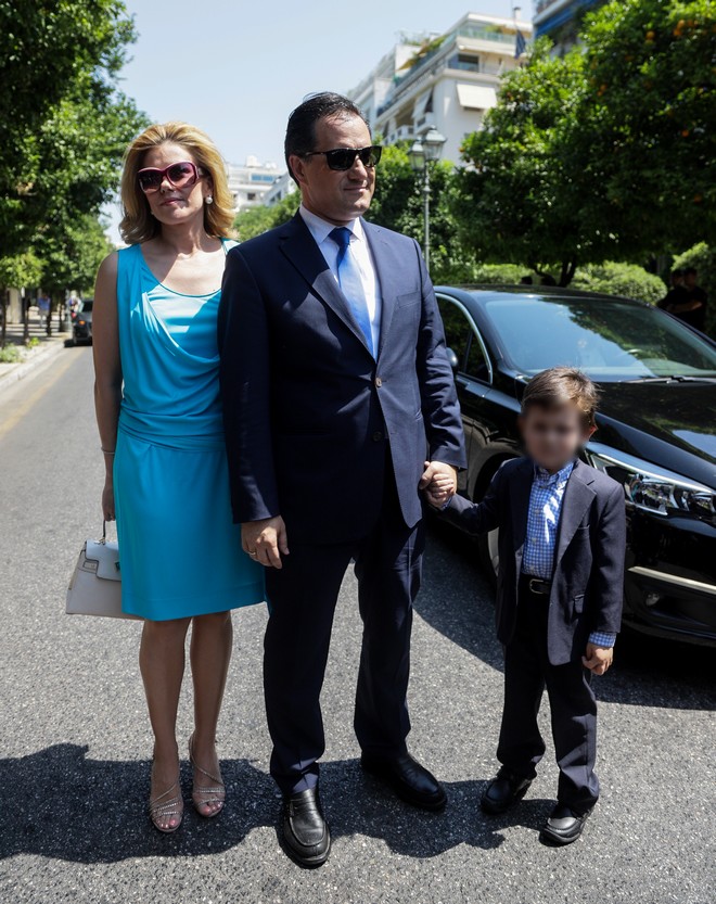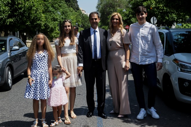 Ο υφυπουργός Ανάπτυξης Χρίστος Δήμας, συνοδευόμενος από την οικογένειά του: