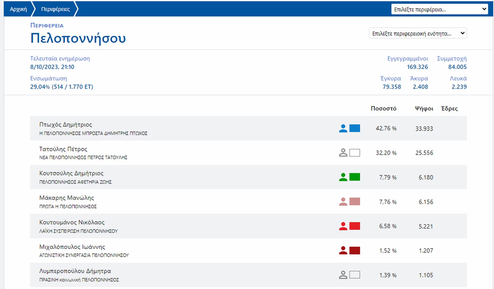 Περιφέρεια Πελοποννήσου: Θρίλερ για την εκλογή Δημήτρη Πτωχού από την πρώτη Κυριακή