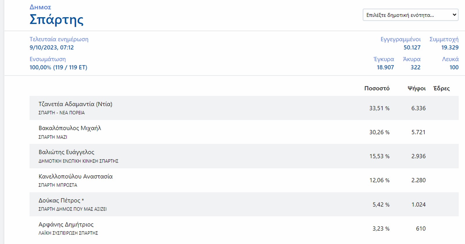 Δείτε τα αποτελέσματα των εκλογών στη Σπάρτη με πλήρη ενσωμάτωση των ψηφοδελτίων: