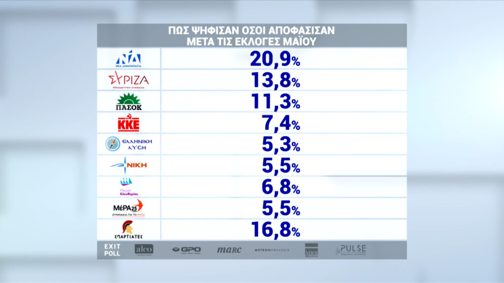 Ενδιαφέροντα στοιχεία φέρνει φέρνει στο “φως” η ανάλυση των exit polls για το πως ψήφισαν οι Έλληνες στην εκλογική αναμέτρηση της 25ης Ιουνίου και συγκεκριμένα για το πώς ψήφισαν οι νέοι, οι κεντρώοι αλλά και ποιά η διαφοροποίηση της ψήφου από την προηγούμενη εκλογική αναμέτρηση. Η ΝΔ στους νέους επανέλαβε την πρωτιά που είχε και στις εκλογές του Μαΐου. Πολλά “καμπανάκια” χτυπάνε από το υψηλό ποσοστό 9,2% που σημείωσε το ακροδεξιό κόμμα “Σπαρτιάτες” στους νέους 17-34 ετών.