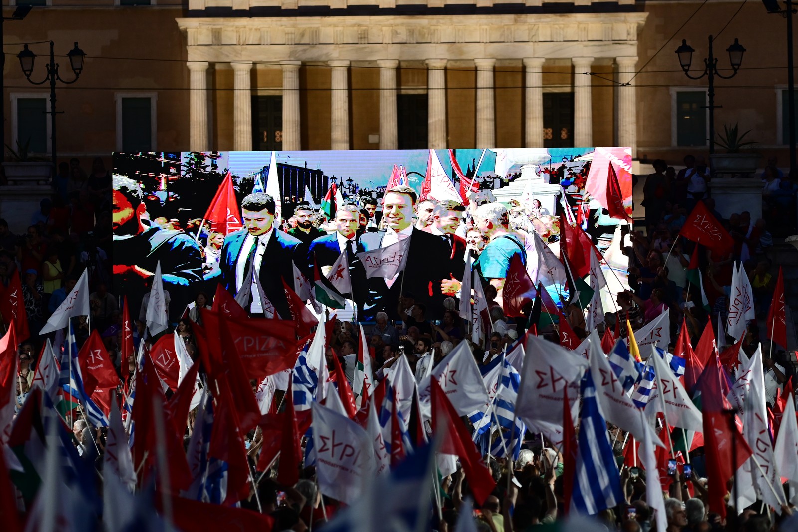 Τα (συνήθη πλέον) στοιχεία «show», έντονα «τραμπικό» στιγμα με συνθήματα του είδους «Στέφανε προχώρα να ξεβρωμίσει η χώρα» αλλά και τον Αλέξη Τσίπρα στο κοινό (και όχι στην εξέδρα) είχε η προεκλογική συγκέντρωση του ΣΥΡΙΖΑ στο Συνταγμα με ομιλητή τον Στέφανο Κασσελάκη.