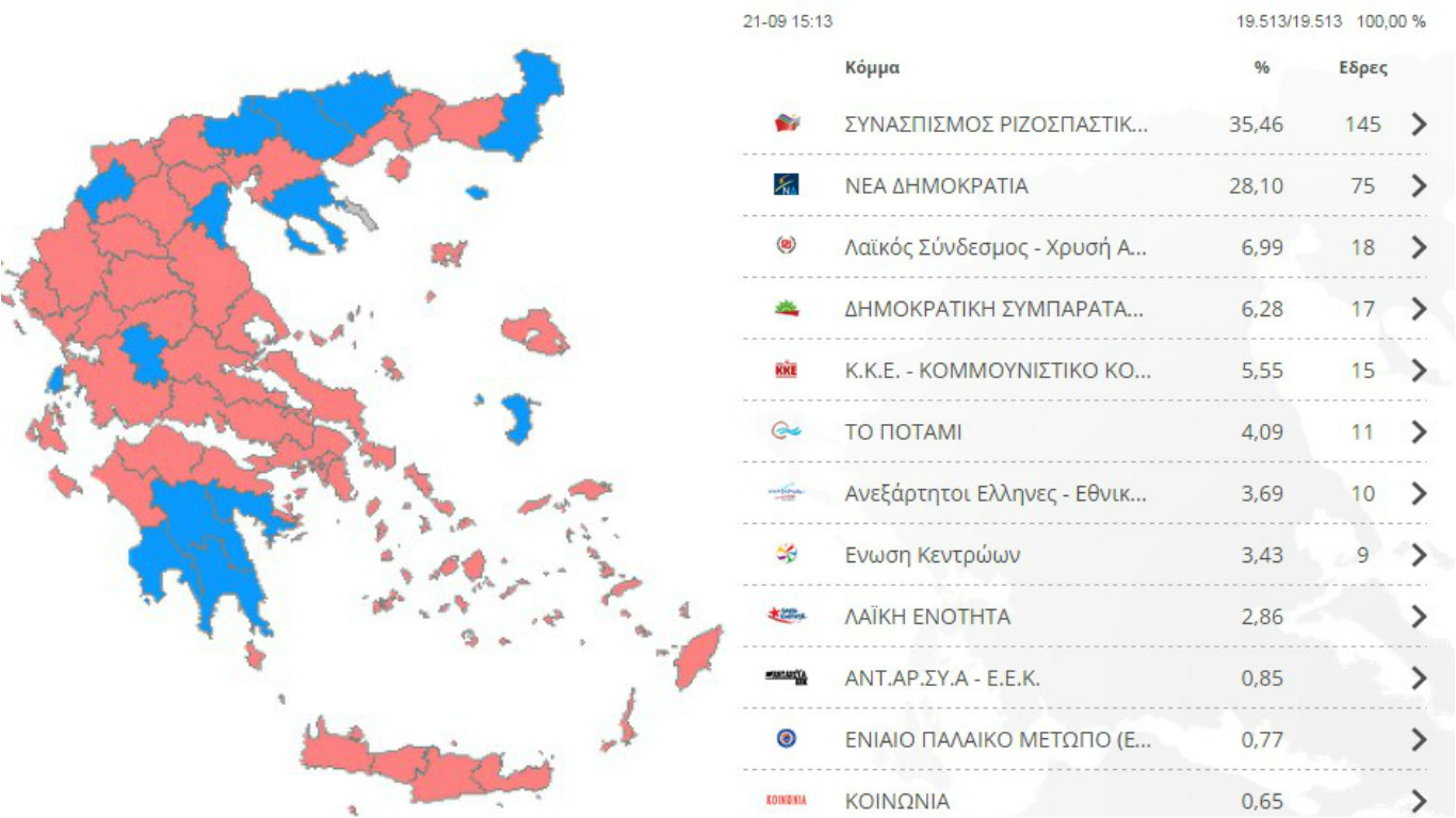ΣΥΡΙΖΑ: 35,47% – 145 Έδρες