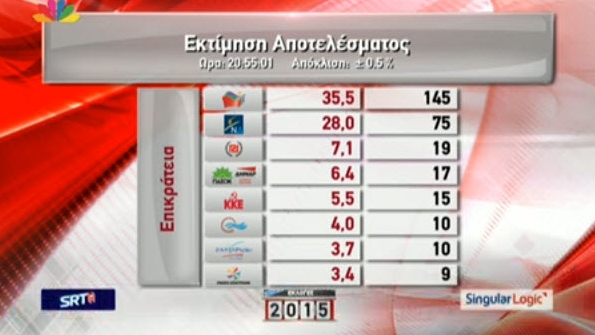 Η πιο σύντομη προεκλογική περίοδος, η τρίτη εκλογική αναμέτρηση μέσα στο 2015 επιβεβαίωσε την πολιτική υπεροχή του Αλέξη Τσίπρα. Έπειτα από μια πρώτη εικόνα που έδωσαν τα Exit Polls, η Singular Logic και το υπουργείο εσωτερικών έδωσε τα παρακάτω αποτελέσματα εκλογών που σχηματίζουν οκτακομματική βουλή, με τον ΣΥΡΙΖΑ να έχει προβάδισμα 7,5%, τους ΑΝΕΛ και την ΕΚ να εισέρχονται στο ελληνικό κοινοβούλιο και την Λαϊκή Ενότητα να μένει εκτός. Σημαντική υποχώρηση κατέγραψε το Ποτάμι, αμετάβλητο στο ποσοστό του έμεινε το ΚΚΕ, ενώ κερδισμένο από την περασμένη εκλογική αναμέτρηση φαίνεται πως είναι εκλογικά το ΠΑΣΟΚ.