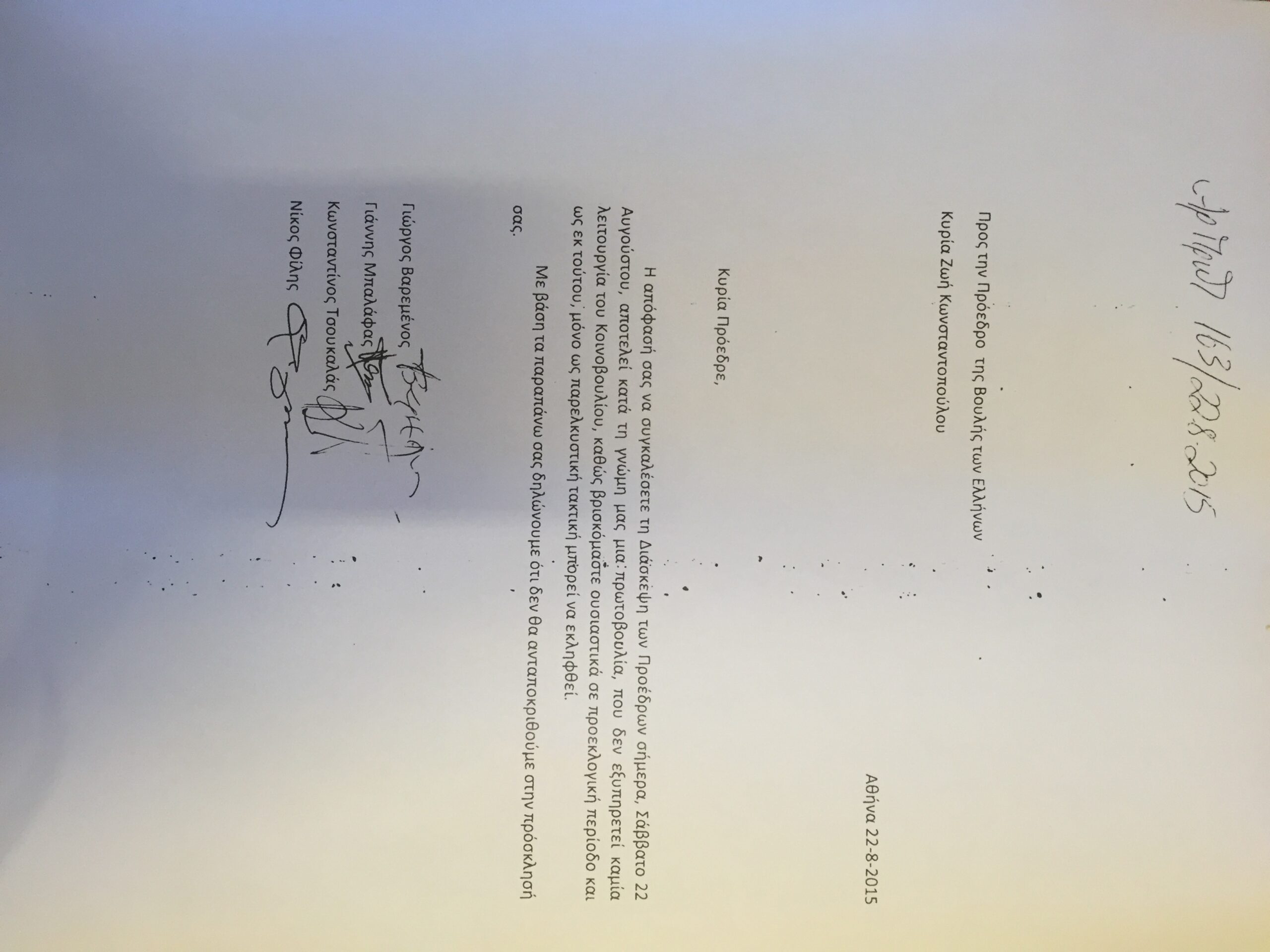 Με επιστολή τους οι συμμετέχοντες υποστηρίζουν πως η πρωτοβουλία της Ζωής Κωνσταντοπούλου δεν εξυπηρετεί καμία λειτουργία του Κοινοβουλίου